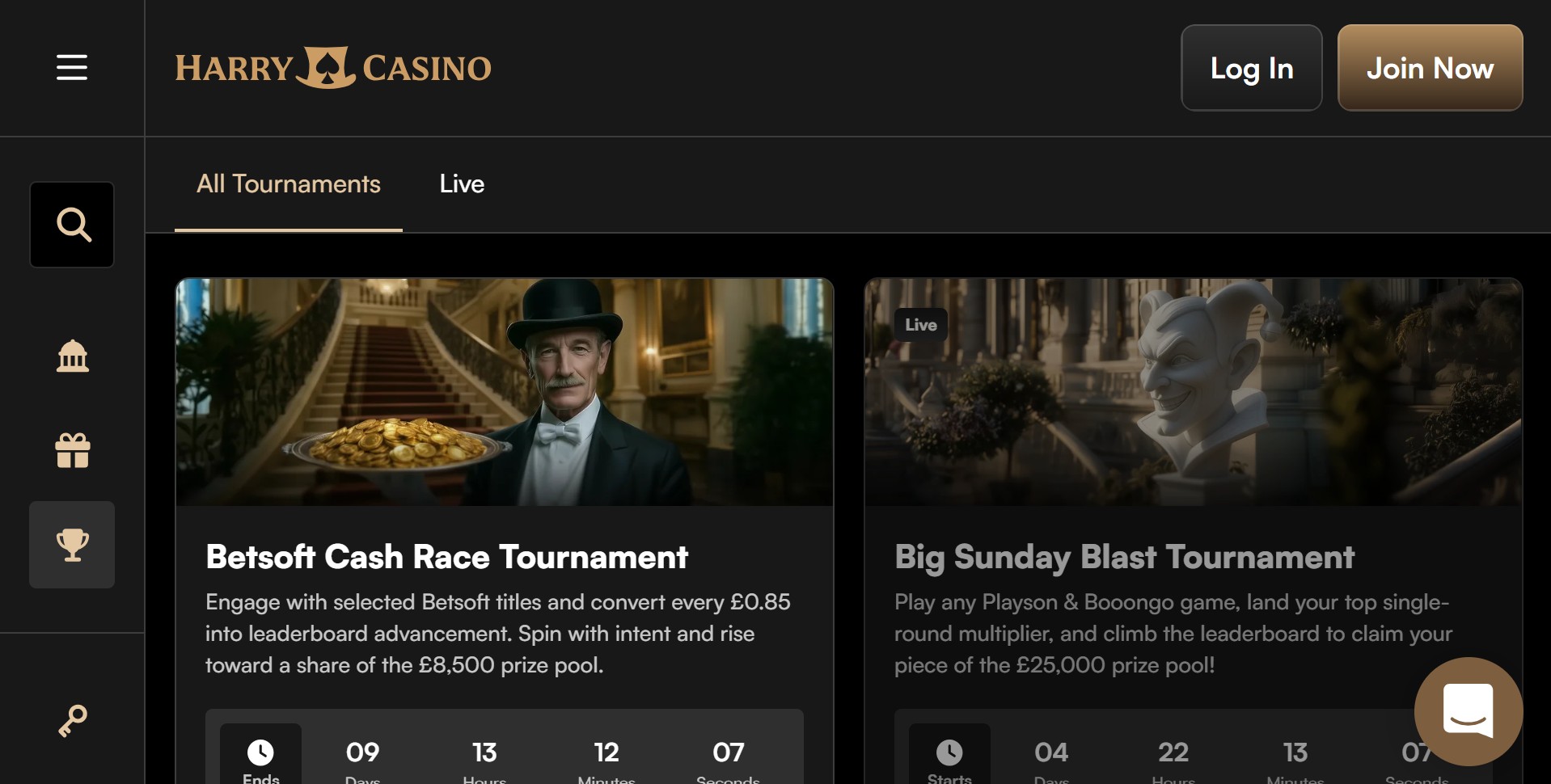 Harry Casino’s interface feels clean, modern, and intuitive. Menus are clearly labelled, promotions are visible without being intrusive, and the search function works as expected.